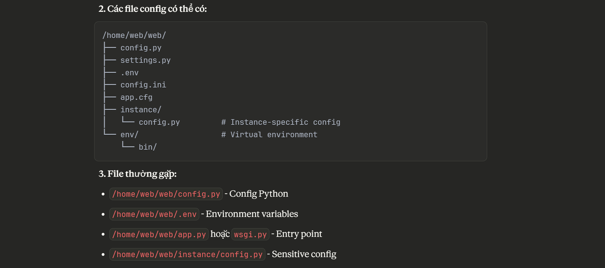 Nhờ Claude liệt kê một số tên file config của Flask có thể được sử dụng