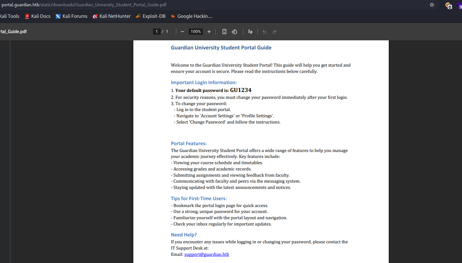 Từ Portal Guide biết được mọi user khi được tạo mới đều có default password là GU1234. Trong thực tế, khá nhiều sinh viên không đổi password sau khi đăng nhập lần đầu vì cảm thấy không quan trọng.